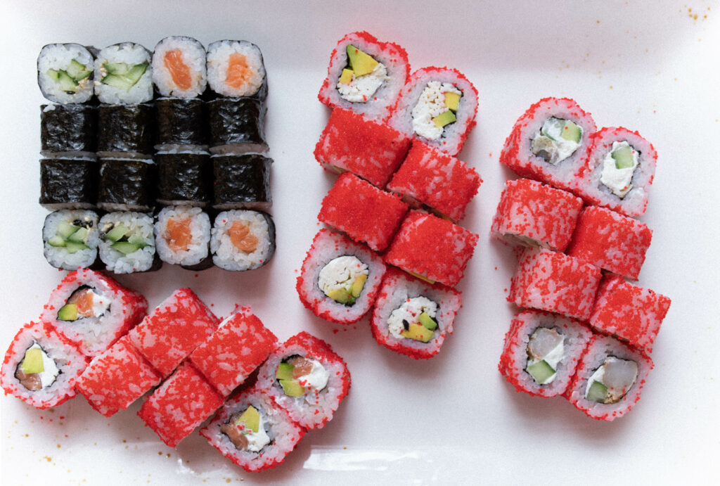 Лосось, сливочный сыр, авокадо, икра масаго