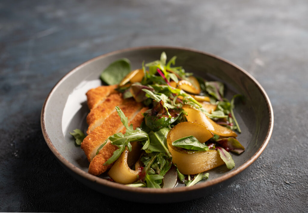 Салат с жареным сулугуни и грушей